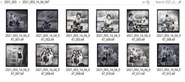 We scan images as TIFF files, which are the archival standard due to their lossless compression preserving more image data. Digitization is beneficial for a number of reasons including keeping track of object condition, lowering the amount of times the negative needs to be handled, and keeping the images accessible to staff and researchers even once they are in cold storage.