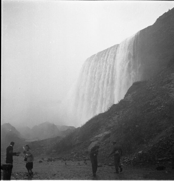 Collingwood’s career spanned about five decades (1940s–1990s), during which, to his credit, he titled the housings in which his negatives were kept by name of the person or the content, and always by the year that it was taken. Even so, Collingwood was a busy man, and as such, his photographic content varied considerably. In 1952 alone, he was commissioned to capture a variety of subjects, including graduations, wedding anniversaries, personal portraits, and commercial booths at the Canadian National Exhibition (CNE), among others. However, in pockets between work, he found time for leisure, and on an overcast day in November of 1952 off he went with friends to photograph the monumental magic that is Niagara Falls.