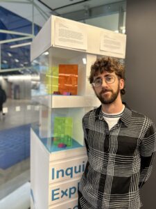 His project looked at local and campus 2SLGBTQ+ history while exploring ideas of fragility and permanence. MacKenzie worked with TMU Libraries’ Archives and Special Collections staff to discover archival campus records and student newspaper clippings that had reported on 2SLGBTQ+ campus events, and used resources available at the Libraries’ DME to etch articles onto hard acrylic material. Through the process of researching and etching these articles, MacKenzie’s project examined the fragility of history and the need to preserve the past. The project is on display at the Libraries’ Research Help.