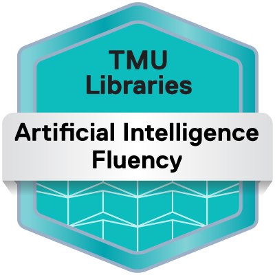 To earn the Artificial Intelligence Fluency stacked badge, earn all four badges below: Delegation, Description, Discernment and Diligence through TMU Libraries’ workshops AI Fluency: Delegation & Description, and AI Fluency: Discernment & Diligence. Check out which workshops are available now & register.